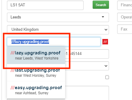 As you enter your what3words address, the field will show address matches/suggestions in a dropdown menu.