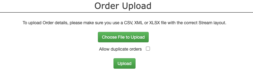 It’s very simple to upload orders into Stream and this can be done using an CSV, XML or XLSX file format.